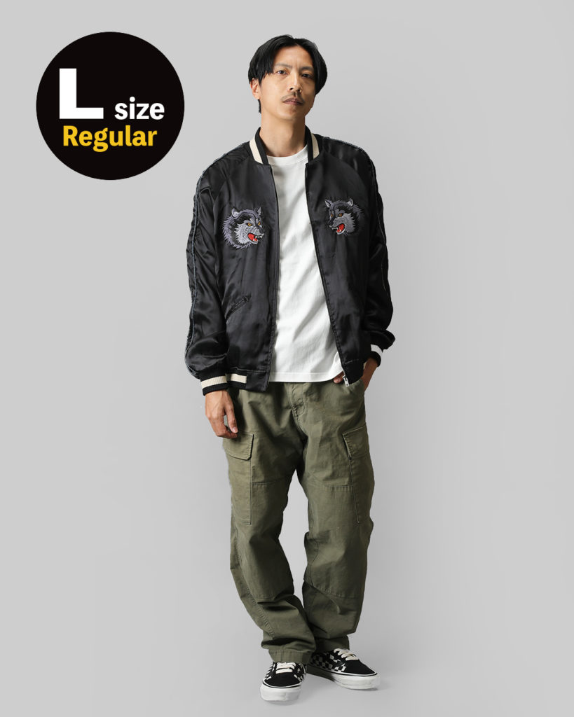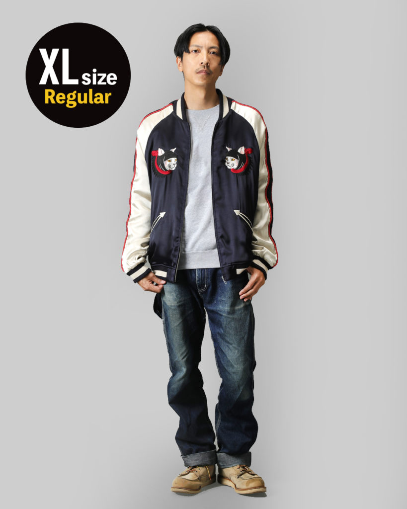 If I want a tight fit, I choose this size. It's similar to wearing a biker jacket with a T-shirt underneath, with the undershirt slightly showing from the bottom of the sukajan.